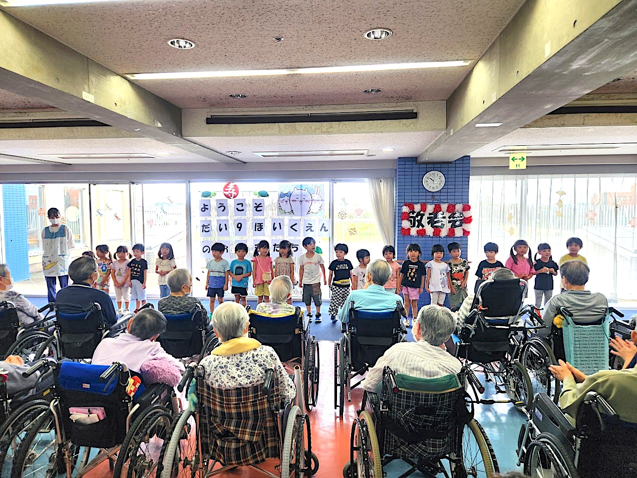 9月11日に年中児きりん組さんが、高齢者施設でお歌のプレゼントをしてきました。