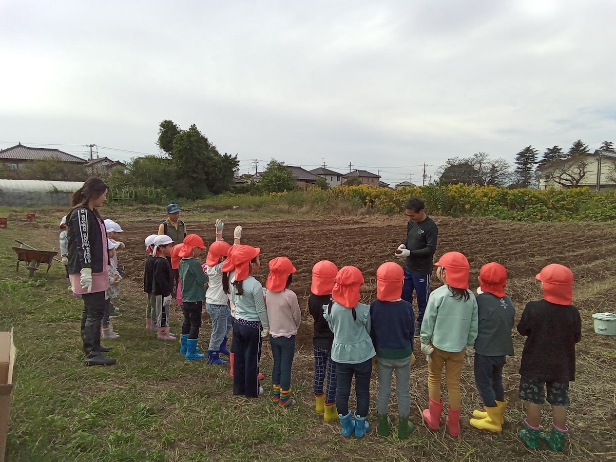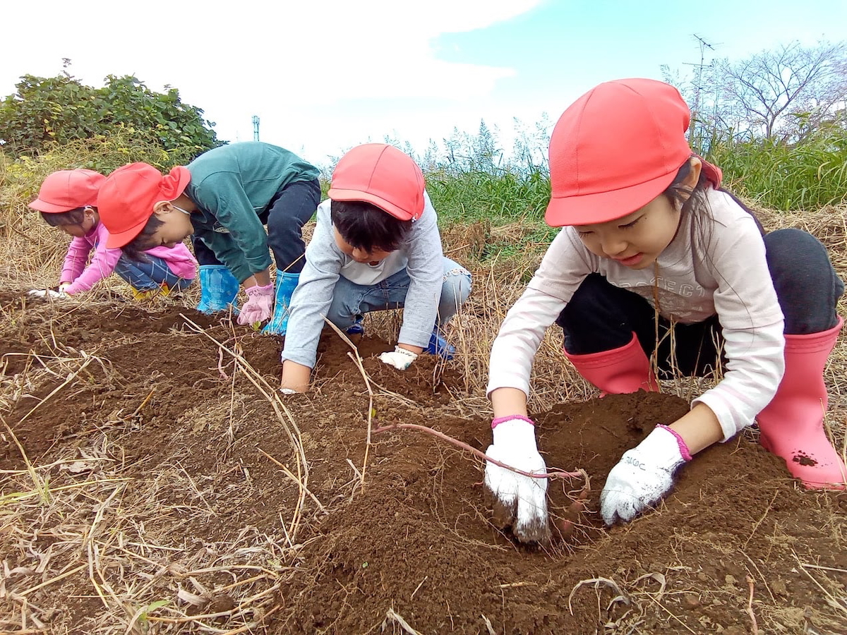 令和7年度 お芋掘り 2025年10月28日 by ksdtadmin 10月23日に年長児が芋掘りに行ってきました。初めてのお芋掘りにワクワクしながら畑に入るこども達!掘っていくうちにお芋が顔を出すと「みて~」と大喜びでした。掘ったお芋は後日、ふかし芋とクッキー作りをする予定です。