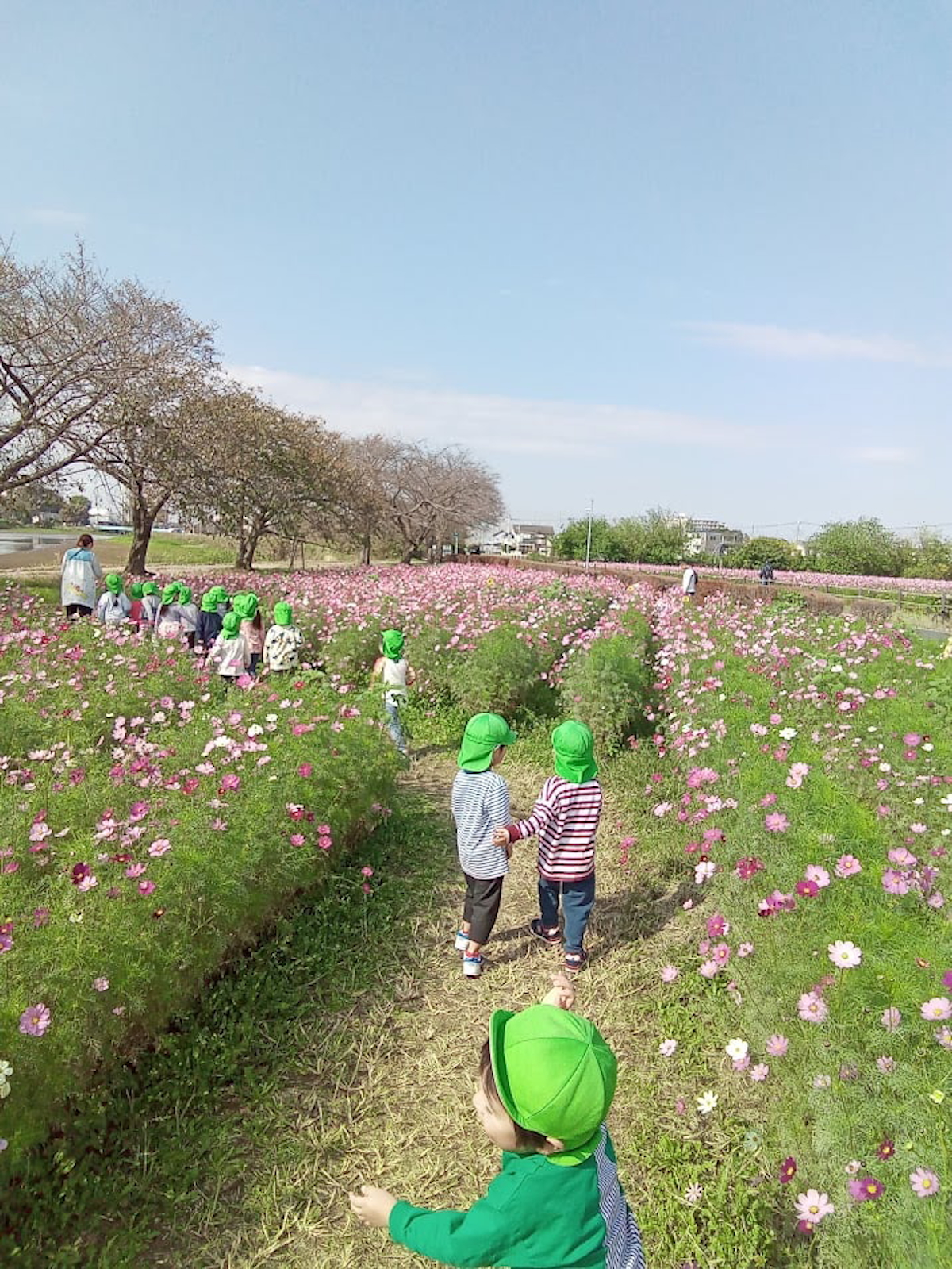 令和7年度 ぱんだ組遠足 2025年10月30日 by ksdtadmin 10月30日に3歳児クラスぱんだ組がエンゼルドームに遠足に行ってきました。お外にある遊具で遊んだり、大きなローラーすべり台を滑ったりと楽しんでいました。隣にあるコスモス畑が見頃だったので、散策もしてきました。コスモスに囲まれた花道を通ると、こども達からは「きれいだね~」「ピンクだね~」と感想がいっぱい!感性豊かなぱんだ組さんです。